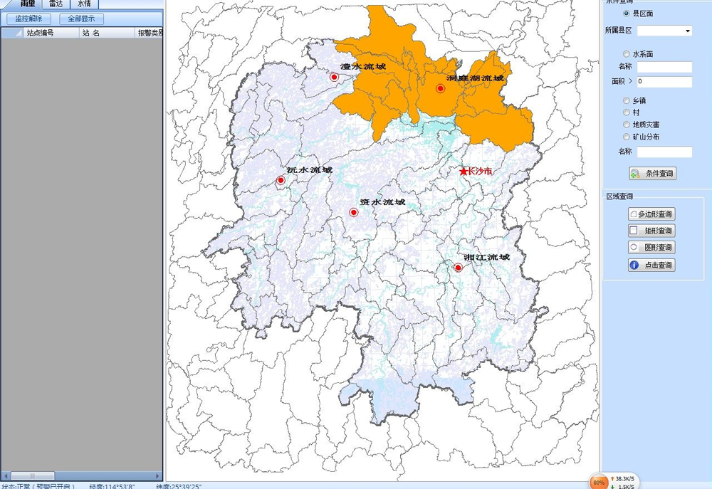 3)中小流域气象预警基于中小流域气象预警分析模型,完成短临预警、短期预警分析,并可对接水利部门的水情雨情数据、水文流域数据、水库工情数据、水利防汛预案等,完成面雨量计算、洪水淹没分析、水库可增容分析等;
